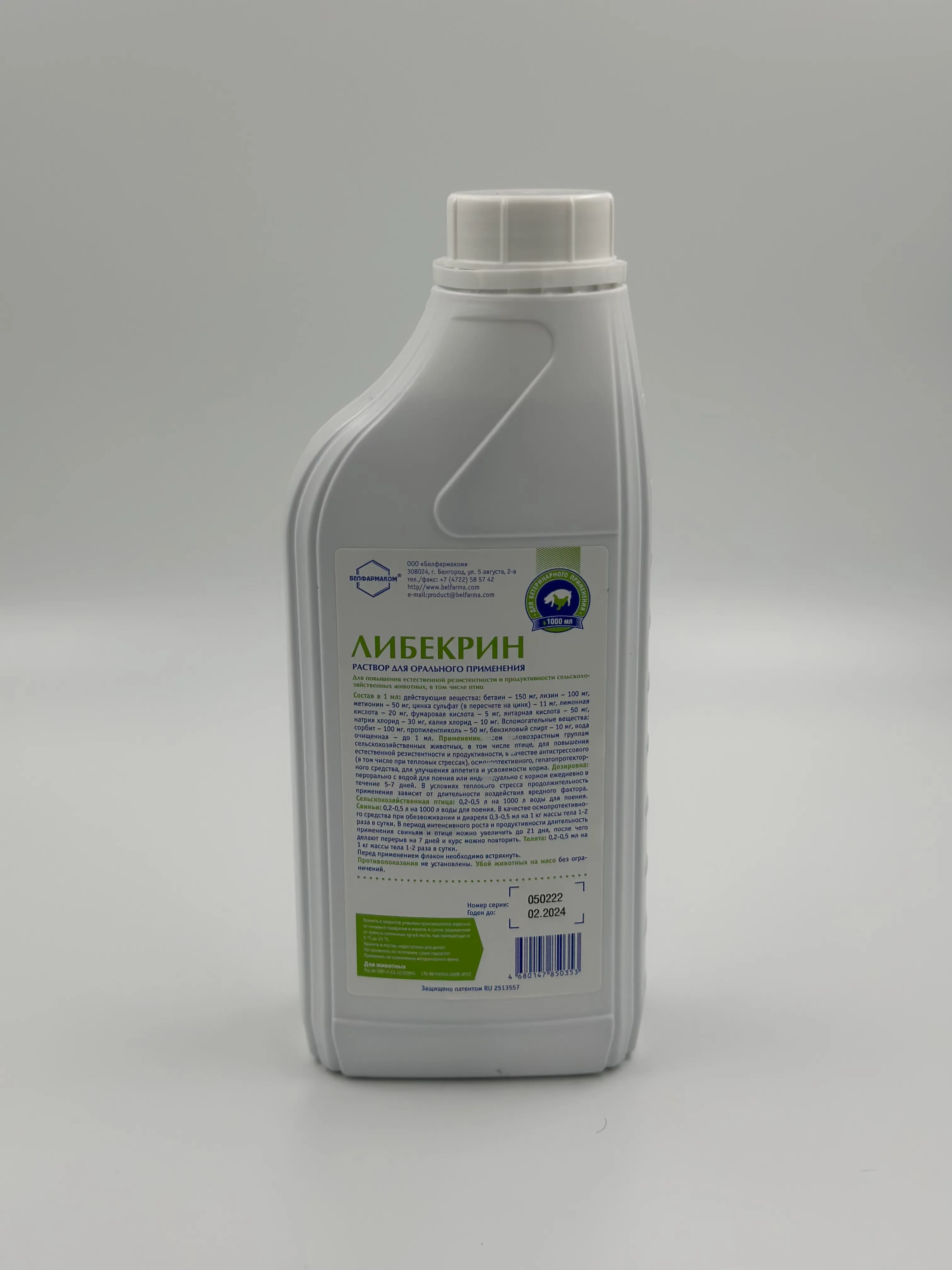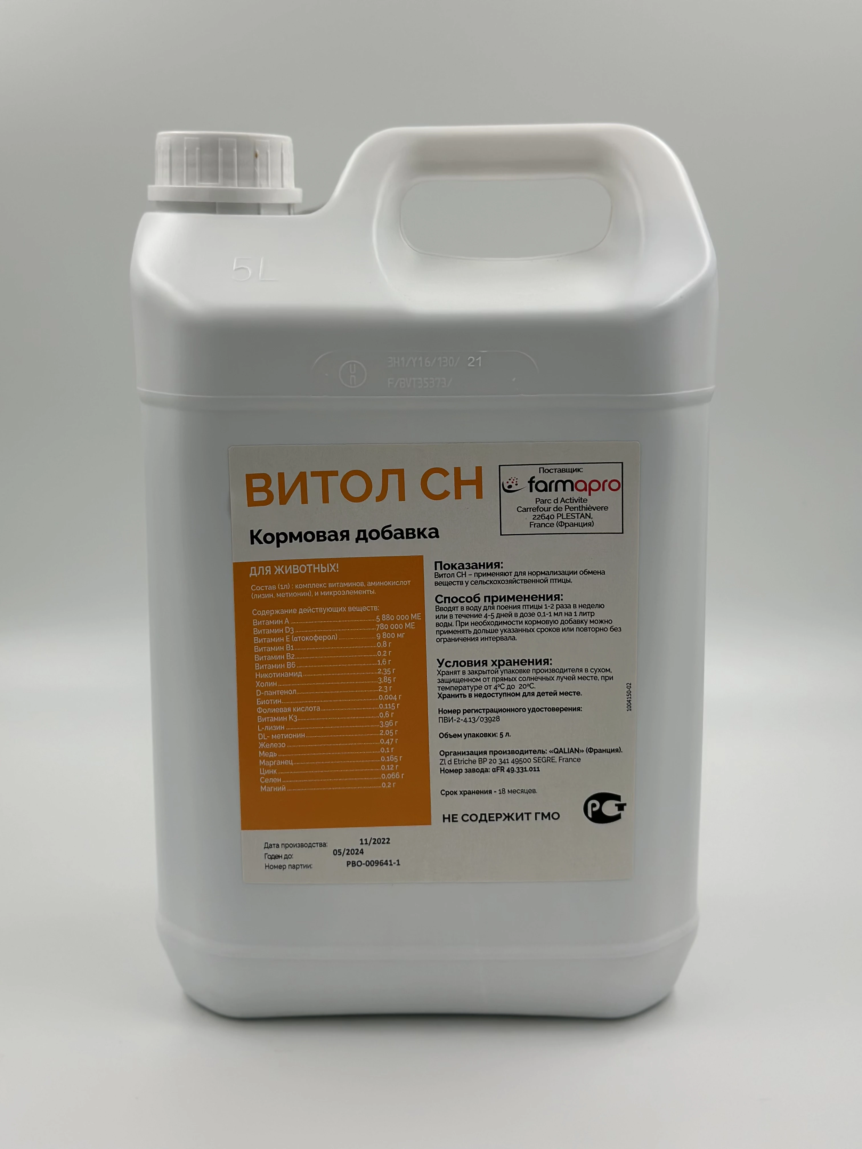 Кормовая добавка для нормализации обмена веществ у сельскохозяйственных животных, птиц. Совместим с кормами, кормовыми добавками и лекарствами.