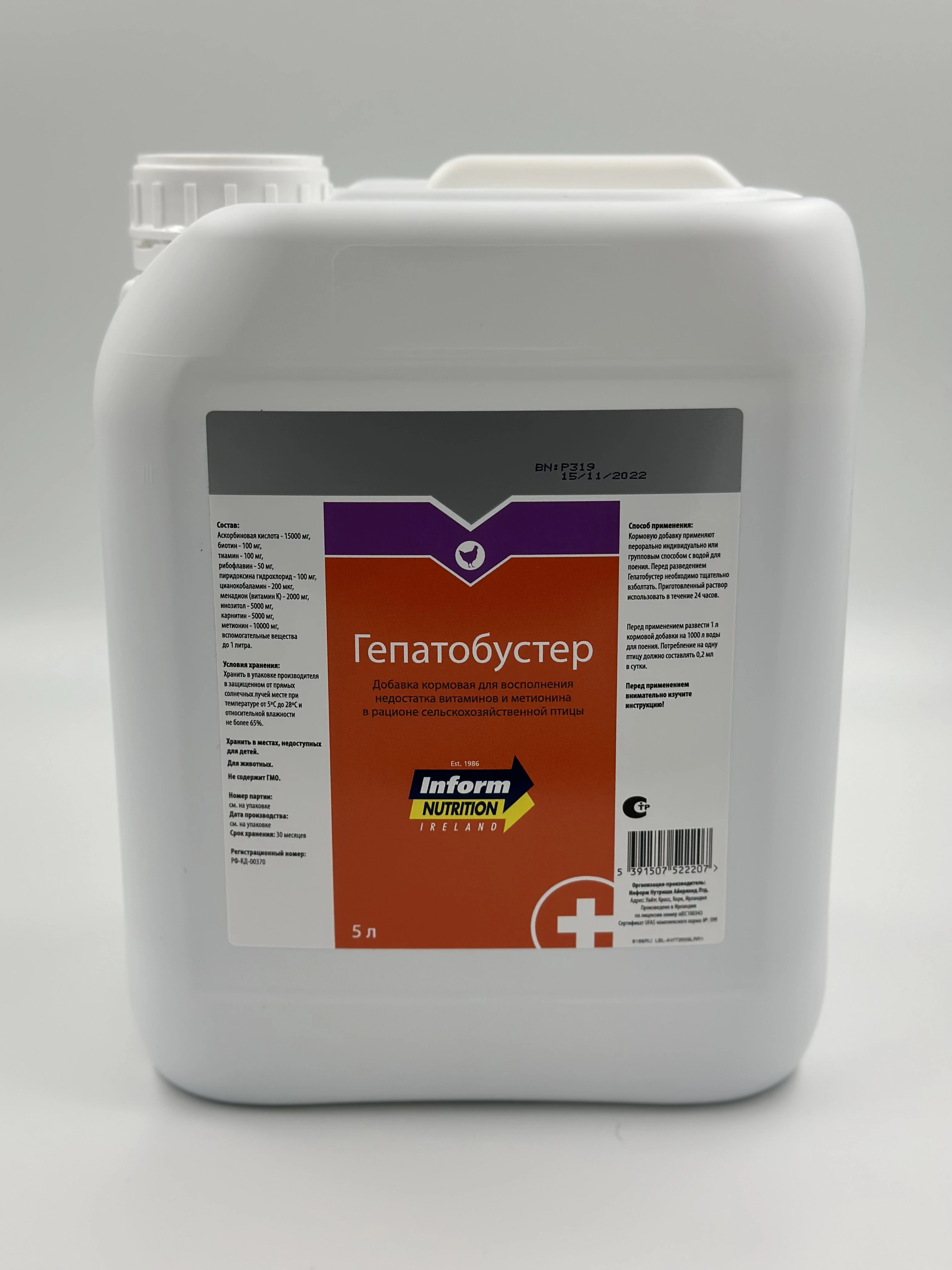 Добавка типа F (химического и/или микробиологического синтеза). Способствует улучшению функции печени, стимулирует метаболические процессы, повышает двигательную активность гладкой мускулатуры, стимулирует образование костной ткани.