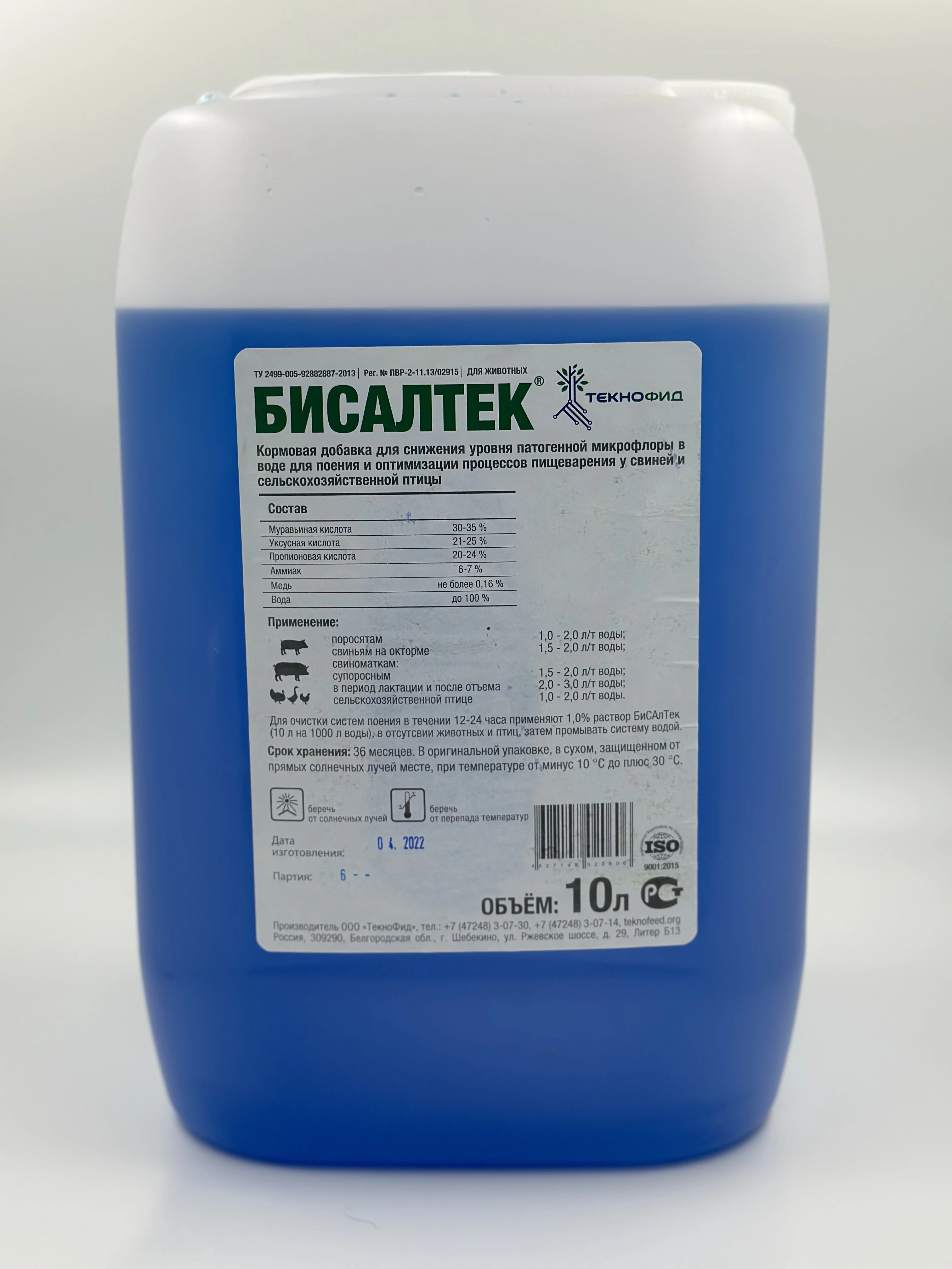 Жидкая кормовая добавка для подкисления воды, улучшения работы системы пищеварения, стимуляции роста и обмена веществ у свиней и сельскохозяйственной птицы, а также очистки системы поения.